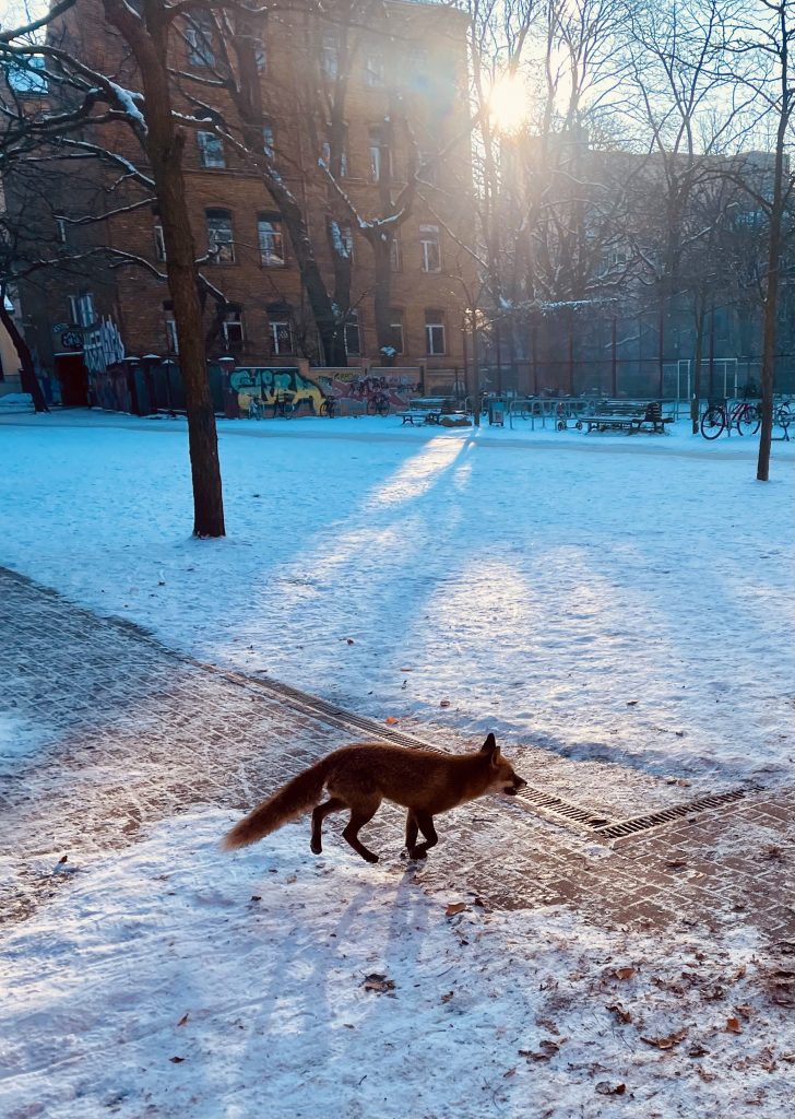 Trotz Klimawandel ist es wieder so weit: Glatteis in Berlin. Ich würde lieber durch alle anderen Wetterlagen, ja, selbst durch strömenden Regen spazieren, als bei Glatteis durch die Straßen zu rutschen. Doch dank meiner Rastlosigkeit bewege ich mich auch in diesen Tagen stundenlang von Ort zu Ort – wenn auch in einem anderen Modus.